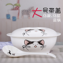 卡通大号带盖汤碗陶瓷碗大碗汤盆家用创意可爱品锅水煮鱼酸菜鱼盆