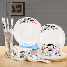 可爱碗碟套装卡通家用碗具韩式陶瓷餐具组合特价4人中式碗筷碗盘
