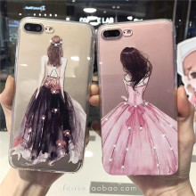 iphone6s手机壳6plus创意高清浮雕彩绘苹果7代透明水钻美女手机套