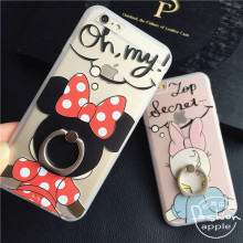 浮雕可爱卡通iphone6 plus手机壳米奇米妮苹果6S指环支架硅胶套女