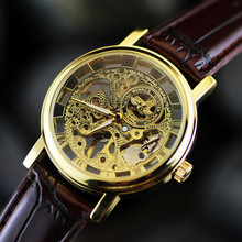 正品男士手表 手动上链镂空机械表 复古表皮带手表 大表盘男表