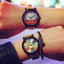 韩版复古真皮带防水简约学生手表时尚潮流石英男表女表情侣一对表
