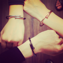 欧美潮牌钛钢黑色钉子手手镯韩国明星同款情侣不锈钢钉钉手环男女