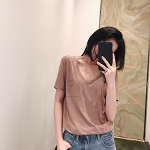FANFAN STUDIO 百搭简约纯色T恤女短袖夏装V领体恤口袋打底衫宽松