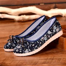 2017春季新款女士帆布鞋碎花布鞋女休闲鞋舒适平底鞋绣花浅口女鞋