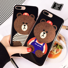 苹果6手机壳日韩可爱小熊闪粉创意女全包软胶iphone6splus手机壳