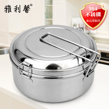 蒸饭盒304不锈钢饭盒圆形双层食堂饭缸成人铁饭盒便当盒学生带盖