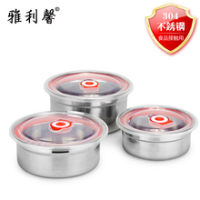 304不锈钢保鲜盒三件套带盖密封罐保鲜碗储物盒冰箱收纳盒圆形