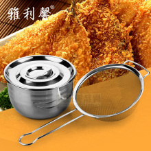加厚加深带盖子不锈钢盆 带盖油缸装油盆漏勺滤油套装 过滤网漏
