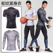 透气蛇纹紧身衣男 跑步长袖速干短袖 高弹力健身训练服篮球压缩衣