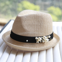 遮阳帽子女 春夏2017韩版珍珠太阳帽遮脸草帽凉帽沙滩帽爵士帽潮