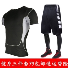健身三件套柔软丝滑紧身衣男运动短袖长裤长袖速干跑步透气篮球服