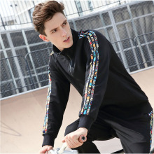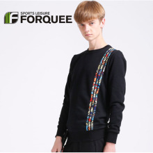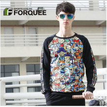 forquee春秋季新款男士圆领黑色外套运动卫衣时尚印花薄款上衣