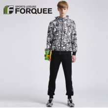 forquee春季新款男士运动服男拉链外套 春秋时尚迷彩印花连帽套装