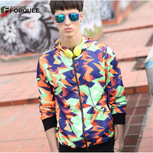 forquee春秋运动外套男士连帽运动夹克潮流宽松大码外套