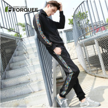 forquee运动套装男春秋新款青少年运动服套装连帽长裤男装潮