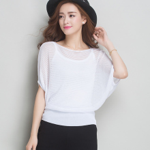 2017夏季宽松大码显瘦t恤女半袖镂空纯色上衣网纱罩衫冰丝针织衫
