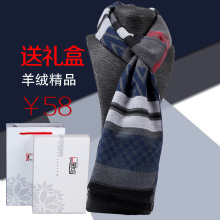 男士围巾韩版潮薄款羊毛围巾仿羊绒围脖百搭年轻人学生时尚礼盒装