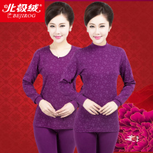 北极绒中老年妈妈装秋冬中高领秋衣秋裤女士纯棉薄款保暖内衣套装