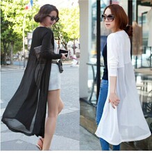 春夏长款披肩薄外套旅游防晒针织雪纺大码拼接显瘦空调开衫沙滩服