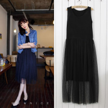 夏款莫代尔蕾丝连衣裙拼接网纱吊带背心长裙高腰网纱裙大码打底裙