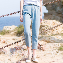 尔给春秋复古水洗浅蓝色学生哈伦裤 BF风宽松显瘦牛仔裤女 长裤