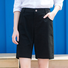 尔给裤子百搭宽松显瘦直筒中裤黑色五分裤高腰短裤女夏 休闲裤