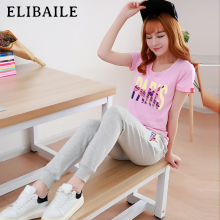 休闲运动套装女夏装新款两件套韩版修身短袖时尚运动服长裤女潮