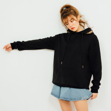 韩版春百搭学生休闲连帽套头麦穗刺绣橄榄宽松上衣大码外套卫衣女
