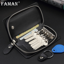 faman 钥匙包 男 牛皮汽车用男式卡包拉链女式多功能锁匙包真皮男