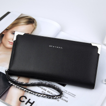 AFV钱包女士长款拉链薄真皮多卡位女包手拿包牛皮黑白大容量手包