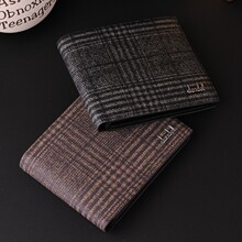 新款钱包男短款编织纹男士皮夹子商务休闲钱夹横竖款青年潮
