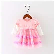 秋款女童纯棉连衣裙 女宝宝秋装长袖玫瑰裙周岁宝宝满月公主裙子