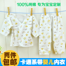 新初生婴儿宝宝男女 全纯棉绑带内衣服 长袖裤系带套装 婴儿内衣
