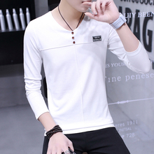 2017春季新款T恤男士长袖V领小衫青少年学生夏季短袖打底衫韩版潮