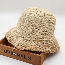 遮阳帽女短檐编织拉菲草圆顶卷边百搭蝴蝶结凉帽女夏天折叠太阳帽