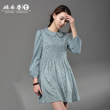 phoebedarling秋冬新款女文艺碎花休闲裙子宽松长袖娃娃领连衣裙