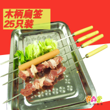 不锈钢木柄扁签户外烧烤针羊肉串配件工具用品烤肉签子钢签铁签