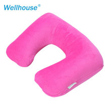 WellHouse棉绒U型充气枕天鹅绒吹气护颈枕头午睡靠垫可洗旅行用品
