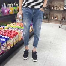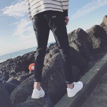 破洞牛仔裤男春季新款2017韩版潮流9分小脚裤修身百搭夏季九分裤