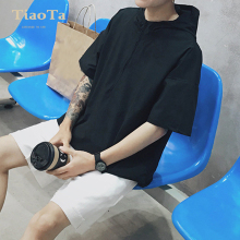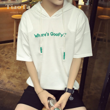 2017夏季新款男士短袖卫衣男款连帽外套韩版潮流宽松学生套头衣服