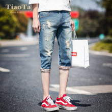 2017夏季新款七分裤韩版乞丐破洞牛仔裤男短裤潮流修身小脚7分裤