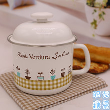 神秘花园1.8L 16cm搪瓷泡面碗 奶杯 保鲜碗杯 麦片杯 含塑盖 包邮