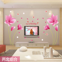 简约现代客厅电视背景墙贴卧室墙面装饰墙上贴画贴纸粉色植物花卉