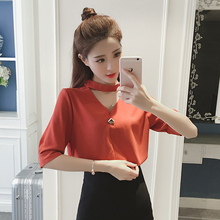 2017夏季新款韩版女装打底衫学生短袖雪纺衫女百搭V领雪纺上衣潮