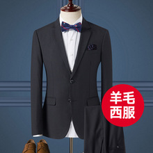 SAROUYA羊毛西服套装男士修身职业正装伴郎新郎结婚礼服