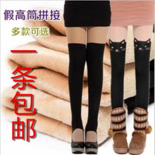 日单秋冬季保暖加绒微压假中筒连裤袜女加厚拼接假长筒大腿过膝袜