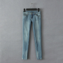 欧美单 百搭做旧水洗磨白低腰修身小脚裤牛仔裤长裤 女