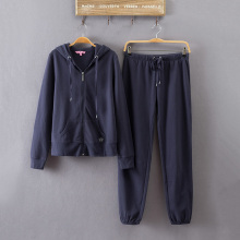 国内单 女装百搭连帽开衫卫衣+松紧腰卫裤 抓绒休闲运动套装3854
