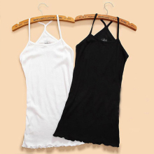 女士纯棉花边Y字吊带背心夏秋外穿 中长款螺纹棉针织小内搭打底衫